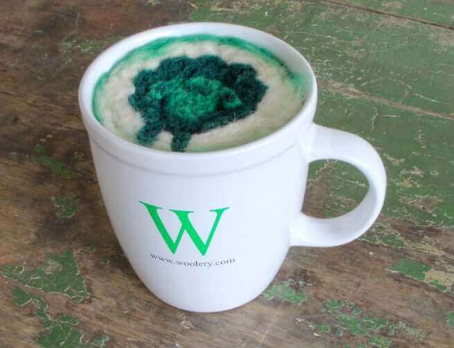 You will need felting needles (Wooden Felting Needle Tool and Single Felting Needles are shown above) if you don't have them, as well as a work surface (we really like the Felted Sky Wool Felting Mat or this Foam Needle Felting Work Surface), but that's all you need aside from a mug!