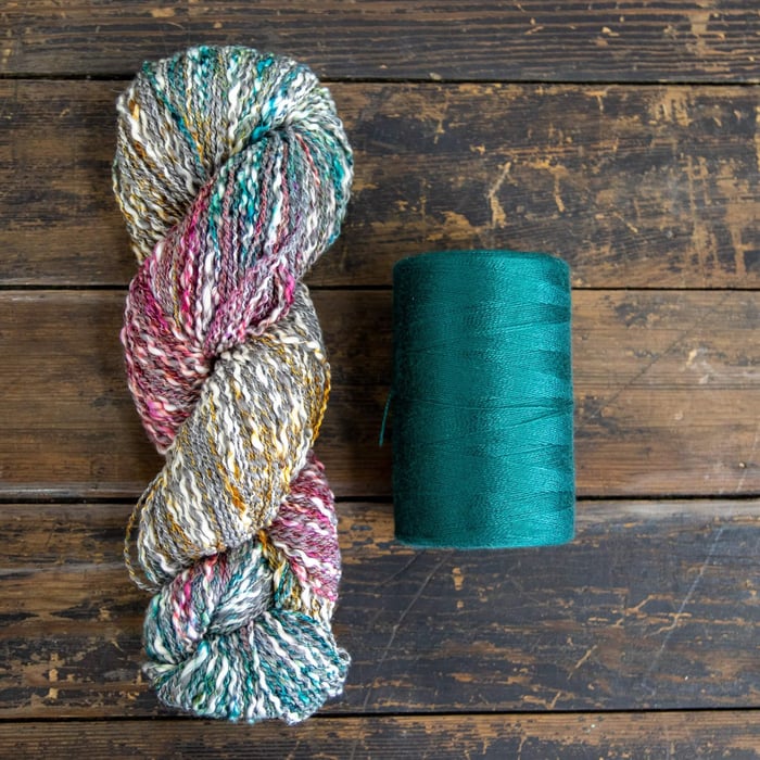 Amy had some Tencel leftover from last year’s Fyberspates’ Fiber Gift scarf and it pairs perfectly with HiKoo Alpaca. Using Tencel as the warp allows the HiKoo Alpico jewel tones to pop in the weft and the texture of the yarn to speak for itself.