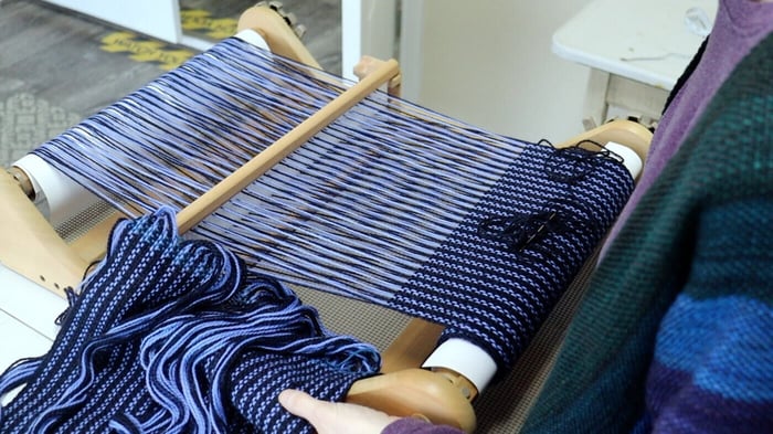 Note: We used almost all of the Cornflower, so if you are using a floor or table loom with more loom waste you will need to adjust your yarn requirement accordingly.