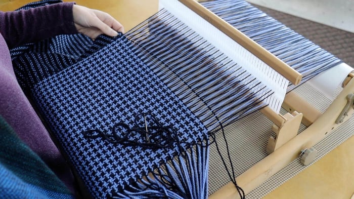 - Scissors, soft measuring tape, pins, and yarn needle for hemstitching on the loom