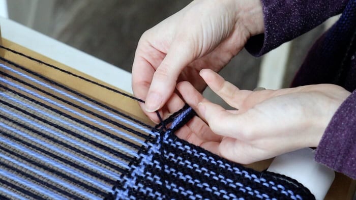 3. For each pick, carefully pull the next warp end of side 1 free of the header and weave it in as weft.