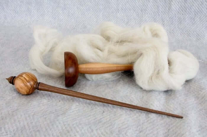 We have several different support spindle options, which will be a little easier on the spinner for car ride spinning than a drop spindle. If you're not familiar with a supported spindle, it's very similar to a drop spindle except instead of you letting the spindle hang free, it rests in a little bowl or stand. We think a lap bowlworks best for the car because you can easily hold it in your lap and keep it secure without it moving around from the car. The spindle shown above is a bead spindle from Woodland Woodworking.