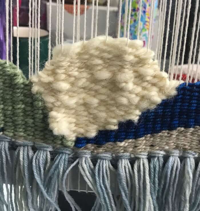 Texture is a great way to make a tapestry project more visually interesting. It can also be very forgiving if you're new to tapestry weaving. If you're concerned that the colors/shapes you're using are too blocky or cartoony, just throw some puffy soumak stitches in there to break up your shapes!