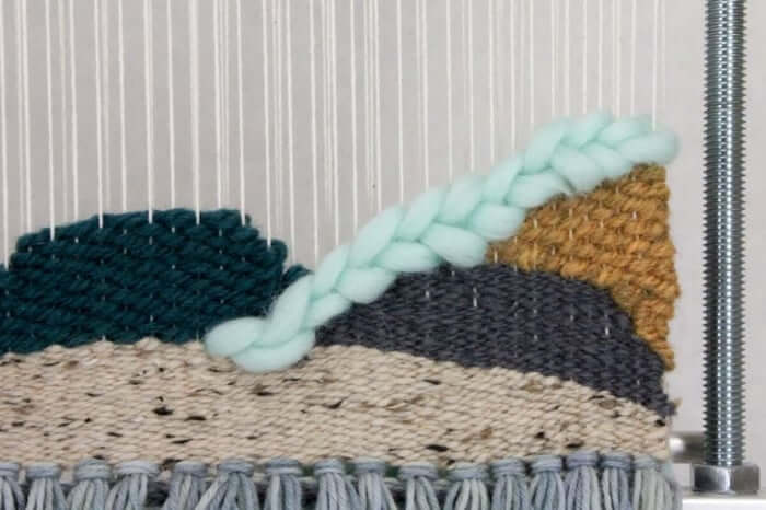 Rya knots don't have to just be a bottom fringe, you can stick them anywhere in your tapestry weaving project that you feel could use some good texture. Just make sure they have some plain weave above and below the knots to make sure they remain secure.