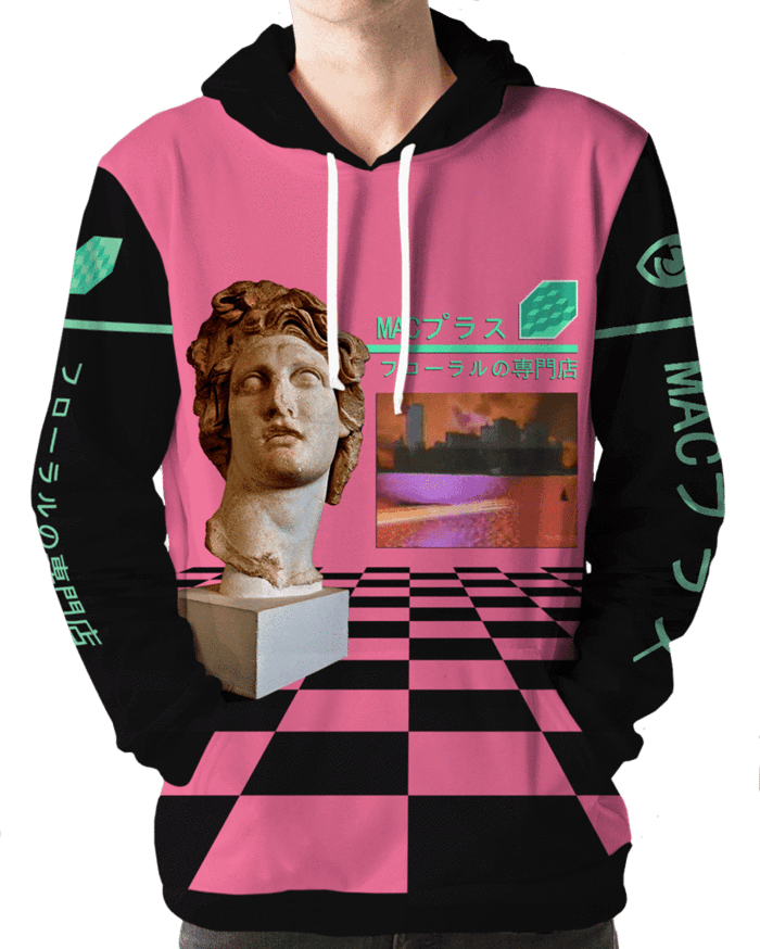 Vaporwave is a genre of electronic music that choppily samples 80's/90's elevator music. The aesthetics look evolved alongside the music genre so it also makes use of 80's/90's nostalgia by repurposing old graphics like the 90's Windows logo. Common themes that come up in the style are Japanese characters, computer menus, retro video games, neons combined with pastels, and brand logos. Fashion-wise it is most often represented in casual street wear.