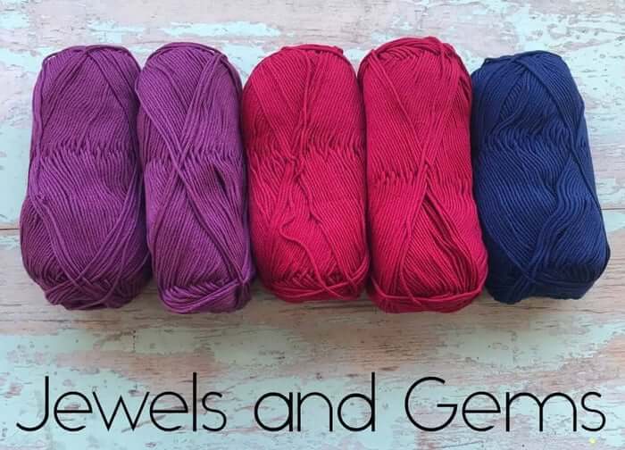Jewels and Gems is for our jewel tone lovers. It uses 2 Balls of 837 - Morado Intenso, 2 Balls of 824 - Burdeos, and 1 Ball of 814 - Marino.