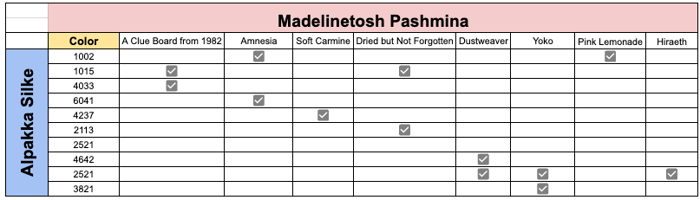 We’ve put together a few colorway suggestions for some of the other Pashmina colors….
