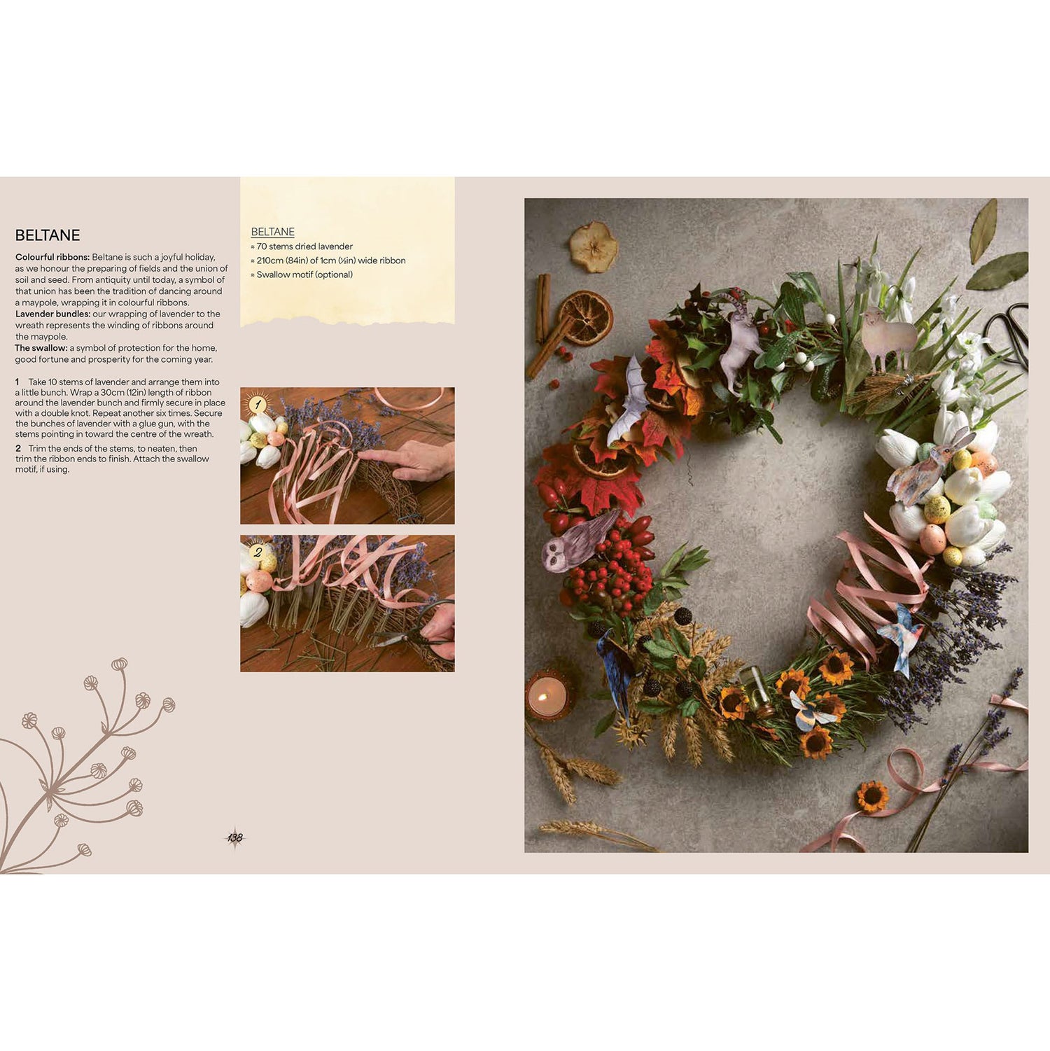 • A range of 17 inspiring projects with all the necessary techniques clearly described. Revel in the warmth and joy of summer with a glorious flower crown for Beltane; decorate your table with cute and cuddly knitted pumpkins for Samhain (autumn); create festive cheer with a rowan berry garland for Yule (winter); and welcome the coming spring with a macramé hanging jar glowing with dried flowers.