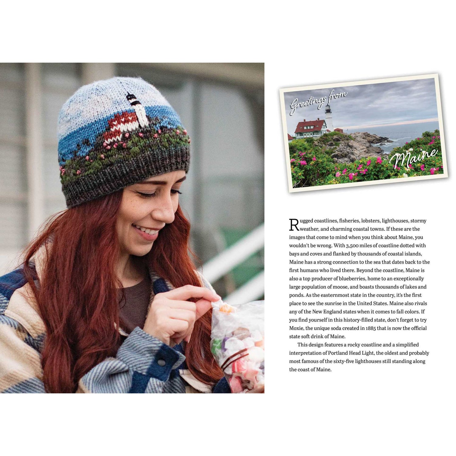 From the lighthouses of Maine to the pine forests of Washington and the wheat fields of Kansas – knit unique beanies inspired by the beauty of the natural treasures, state symbols, and distinctive landmarks of each state in the union.