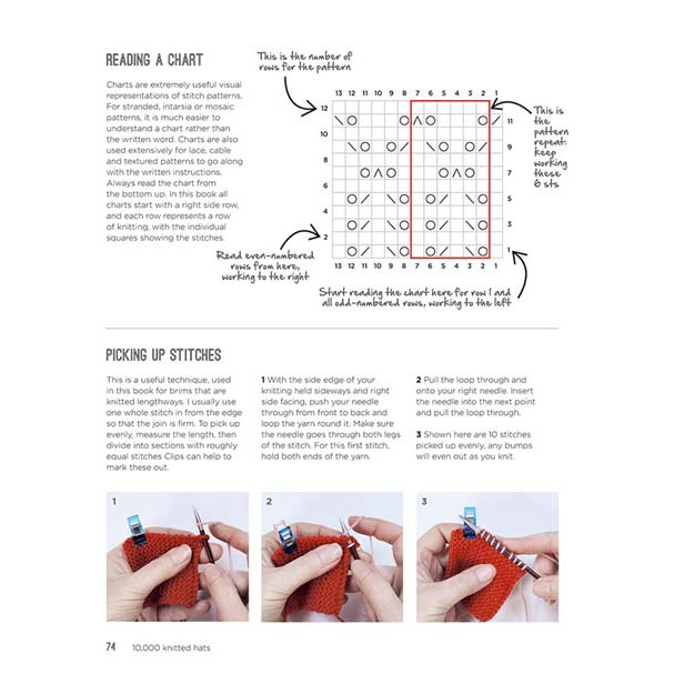 The hat brims, bodies and crowns use many stitches, some familiar and others new. Find color work, both easy and more challenging, along with slipped-stitch patterns, cables, lace and texture, all explained clearly in the handy techniques section.