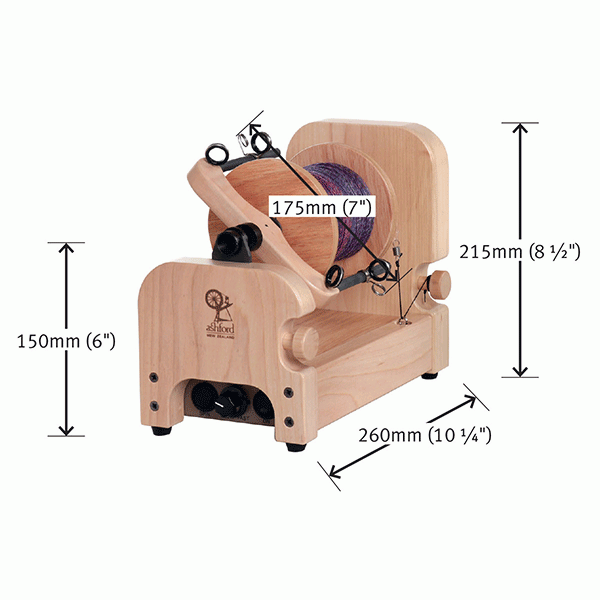 Spin large amounts of yarn, quickly and effortlessly for yourself or a cottage industry. The Ashford e-Spinner 3 is one of the smallest, lightest and most versatile electronic spinner on the market. No treadling required! The quiet direct-drive flyer has an infinitely variable speed from 0-1800 rpm so it is suitable for all skill levels. Hand controls allow you to easily turn the motor off and on, change speed and direction. The bobbins are quick and easy to change. Small and portable plus the optional 12v car cord enables you to take the e-Spinner with you to guild meetings, on holiday, use it in the car, caravan, RV or boat. Order this Ashford electric spinner today!