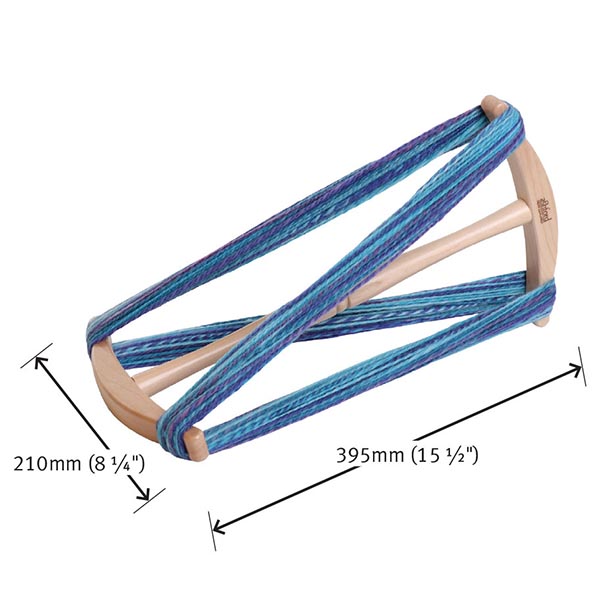 Made from turned Silver Beech hardwood, the specially shaped crossbars allow the skein (hank) of yarn to slide off easily when made.