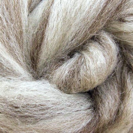 Blend of natural white, brown and oatmeal Bluefaced Leicester. Suitable for spinning, felting or other fiber projects.