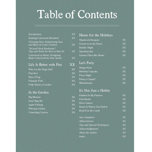 Wear your passions loud and proud with these color- work socks that are as fun to make as they are to wear! Colorwork sock maven Charlotte Stone is back with quirky patterns that knitters will love to bring to life, from beloved pets to favorite foods to hobbies galore. Express your personality or create a special gift with sock themes like: