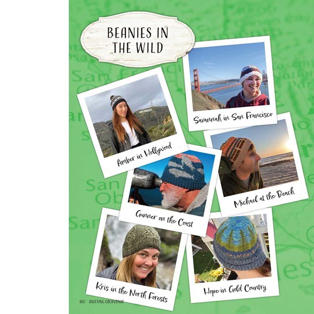 - Each pattern is accompanied by photos of the finished beanie and California's landscapes, landmarks, flora, and fauna