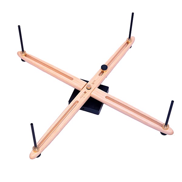 Every fiber artist, spinner, knitter/crocheter and weaver can benefit from adding a quality skein winder to their workspace. You’ll love everything about the new Vivo. It is infinitely adjustable to fit any size skein by simply sliding the metal posts and securing them in place with the sturdy brass knobs. Fully functional as either a skein winder (skeiner) or yarn swift.