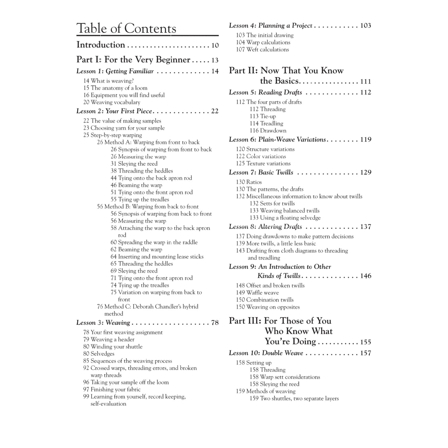 Originally published in 1984 (under the name Learning to Weave with Debbie Redding), more than 150,000 copies have sold to weavers who have used this unparalleled study guide to learn from scratch or to hone their skills.
