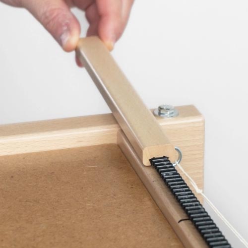 These wood raddle covers slide over the top of Louet raddles to hold warp ends in place.