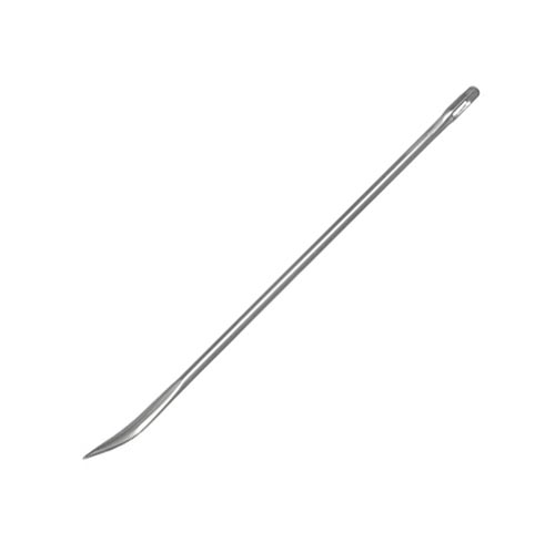 The 5/16" by almost 1/8" eye is large enough for even heavy rug wools and the tip is flattened as it bends to a slight scoop shape.