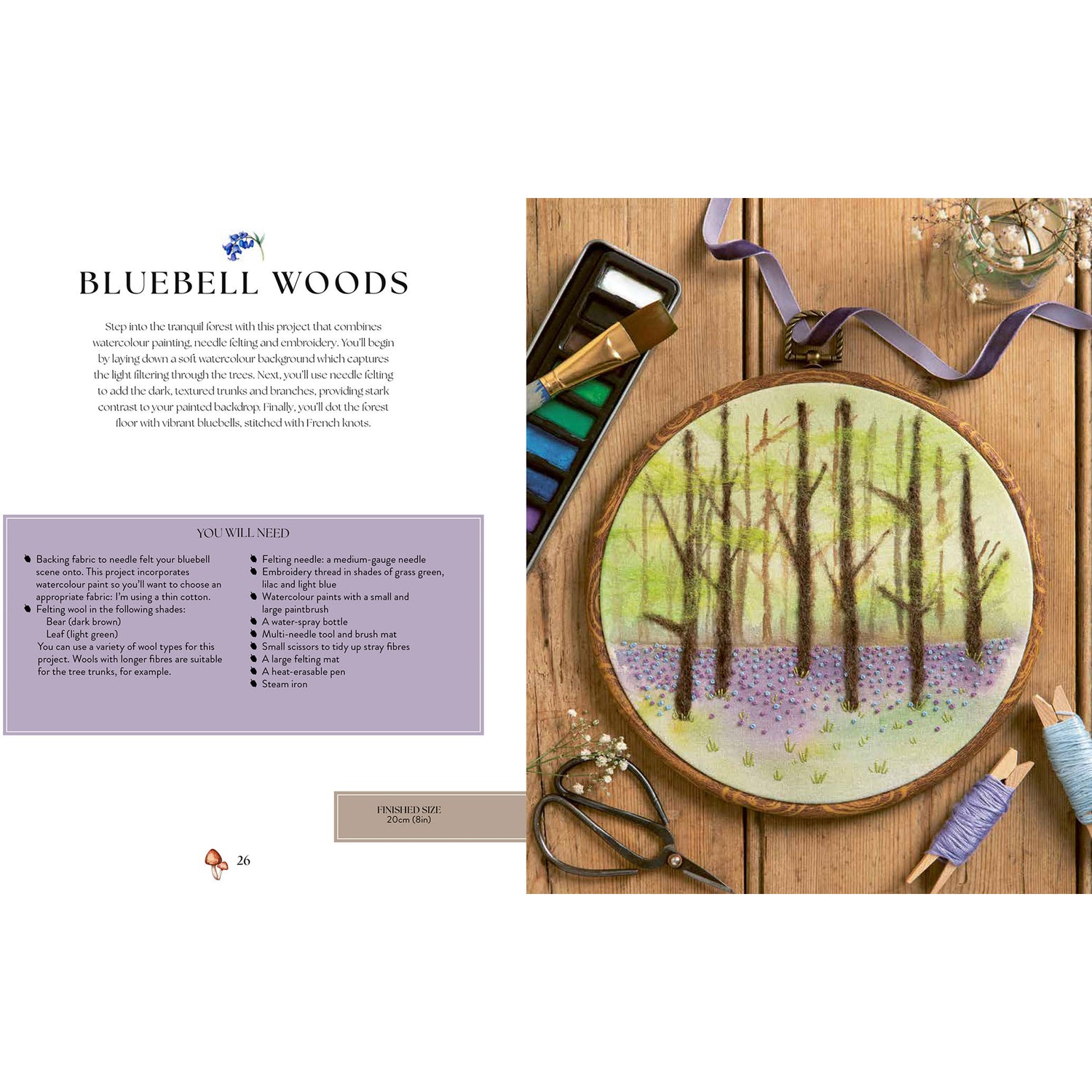 - Push your creative boundaries: incorporate embroidery techniques, watercolor, felt fabric and small foraged items, which add extra dimension and texture to bring your woodland scenes to life.
