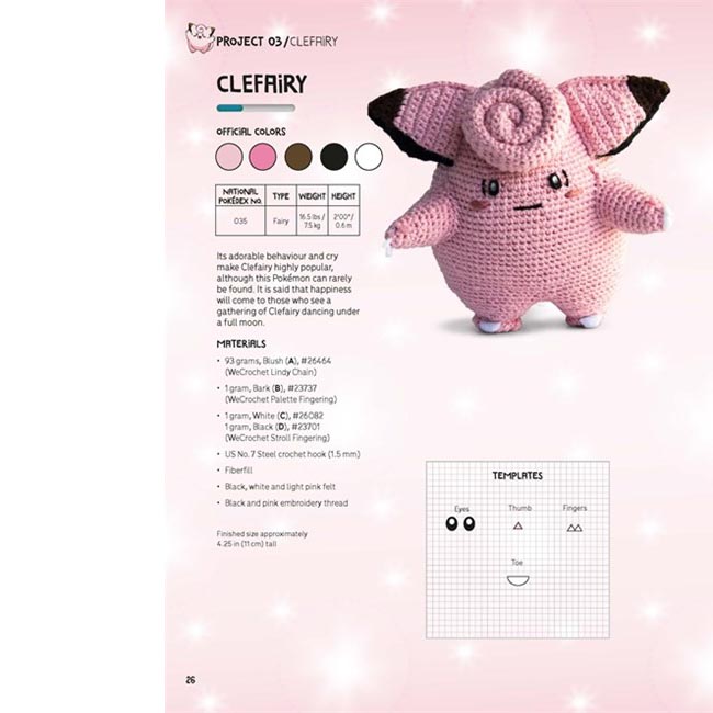 All Pokémon trainers need to train—themselves and their Pokémon. The same is true with crochet. To help in your training, the book starts with a how-to guide to understanding crochet patterns, then explains and demonstrates the various stitches needed to make the Pokémon. Then it addresses the special techniques you’ll need to master, which tools and materials you’ll need, and then how to put everything together to make a perfect Pokémon plushie.