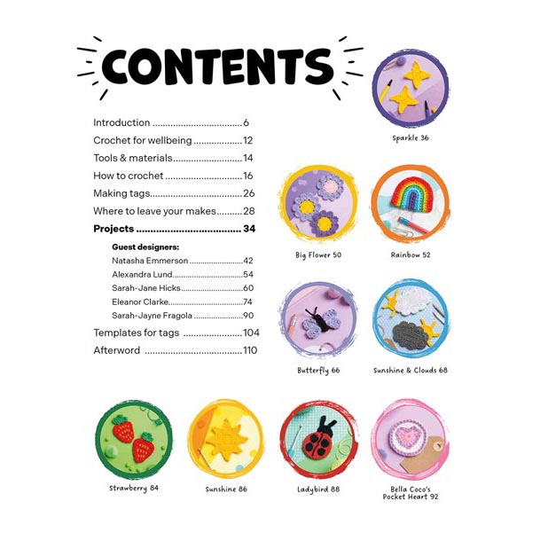 - 'Guest' designs from a range of well-known crochet designers, including Sarah-Jayne Fragola (@BellaCoco), Sarah-Jane Hicks (@flo_and_dot), Natasha Emmerson (@love.indy_) and Alexandra Lund (@nattythread)