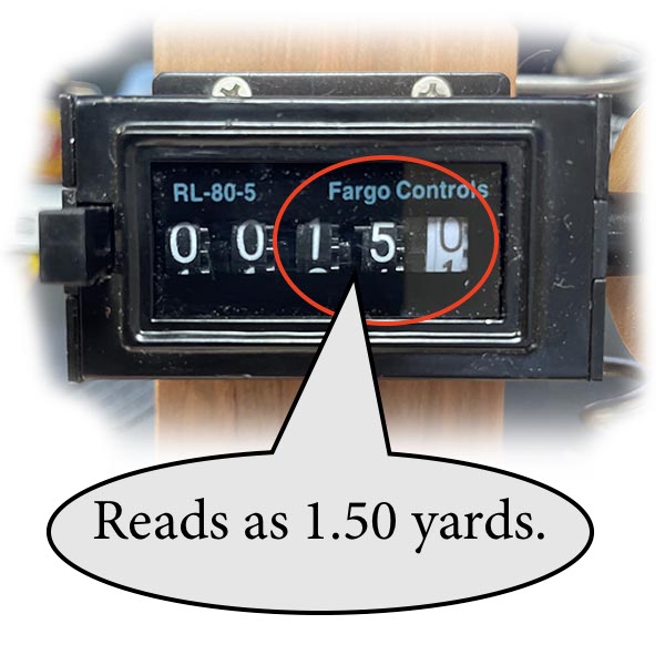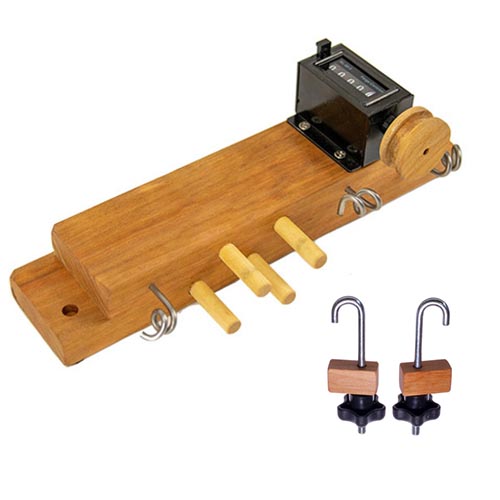 A tensioned yarn meter that can accommodate yarns from lace weight (0) to super bulky (6). Analog counter measures in yards. Clamps to tables up to 2" thick.