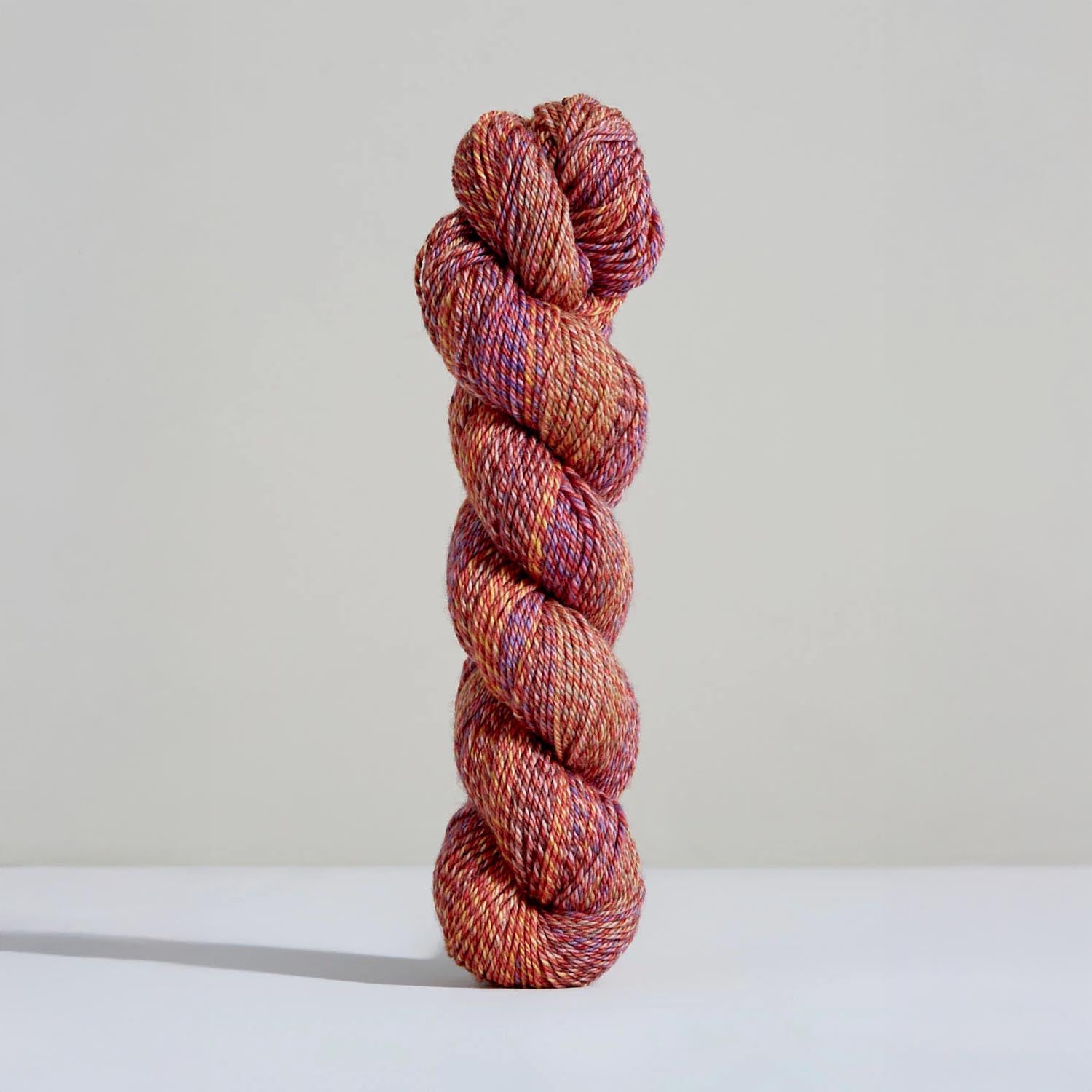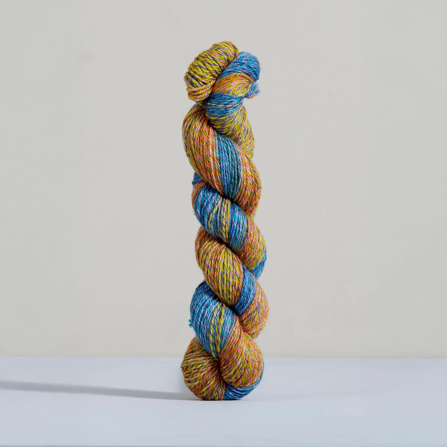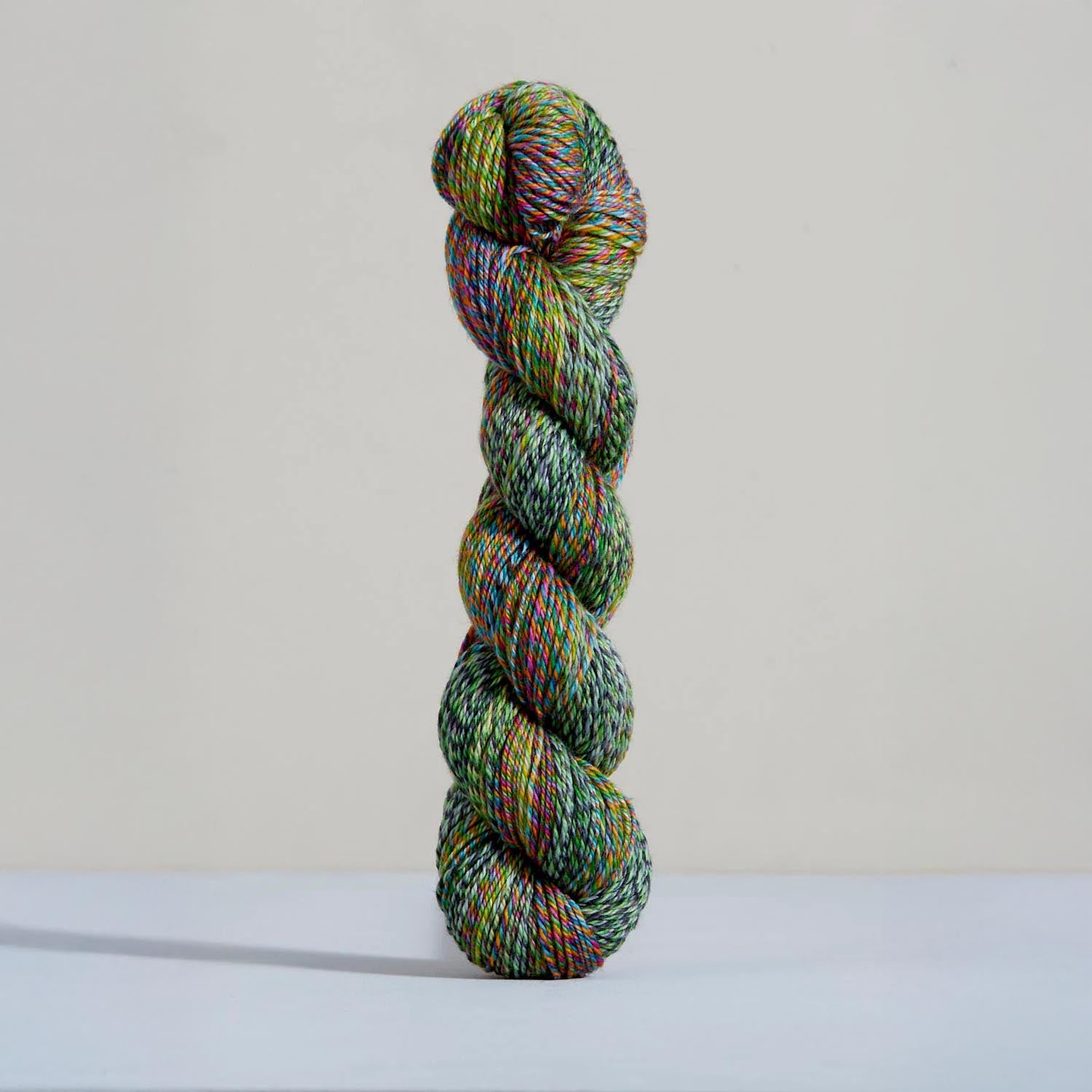 The colorful plies twist together mirroring the trees' unusual spiral grain growth patterns. Gradual color changes with a visual depth in texture offer an engaging and delightful knitting experience.