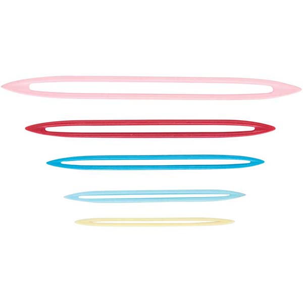 They range in length from 1.75 to 3.5 inches and feature an eye that runs the entire length making them much easier to thread and use than traditional needles.