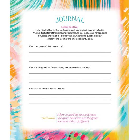 Creative ideas, exercises, and prompts from internationally-acclaimed artist Jessi Raulet (EttaVee). The book is organized into eight chapters and features creative opportunities such as journaling, collage, drawing, painting, and writing. Themes include: nurturing the artist within, exploring various art techniques without self-judgment, identifying and expressing an authentic style, harnessing the creative energy of travel and movement, experiencing the powerful effect of color on emotion, developing creative confidence, and sharing the joy of creativity with others. Designed to inspire, the book comes with metallic edging, elastic closure, foiled cover, and artist-quality paper.
